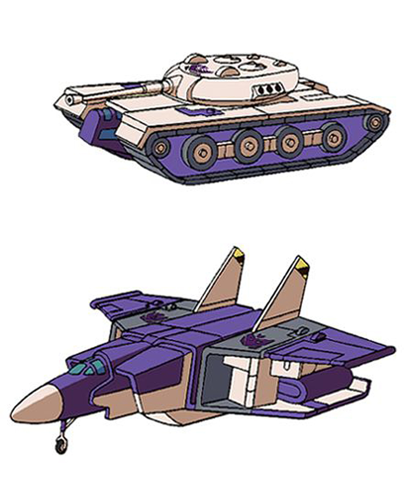 Blitzwing is a Decepticon triple changer who alternates between tank, jet, and robot modes. He is arrogant, temperamental, and enjoys showcasing his destructive power. Blitzwing is versatile on the battlefield, capable of both aerial strikes and ground assaults. His unpredictability makes him dangerous but occasionally unreliable to other Decepticons. He participates in key Decepticon missions requiring raw firepower and adaptability.